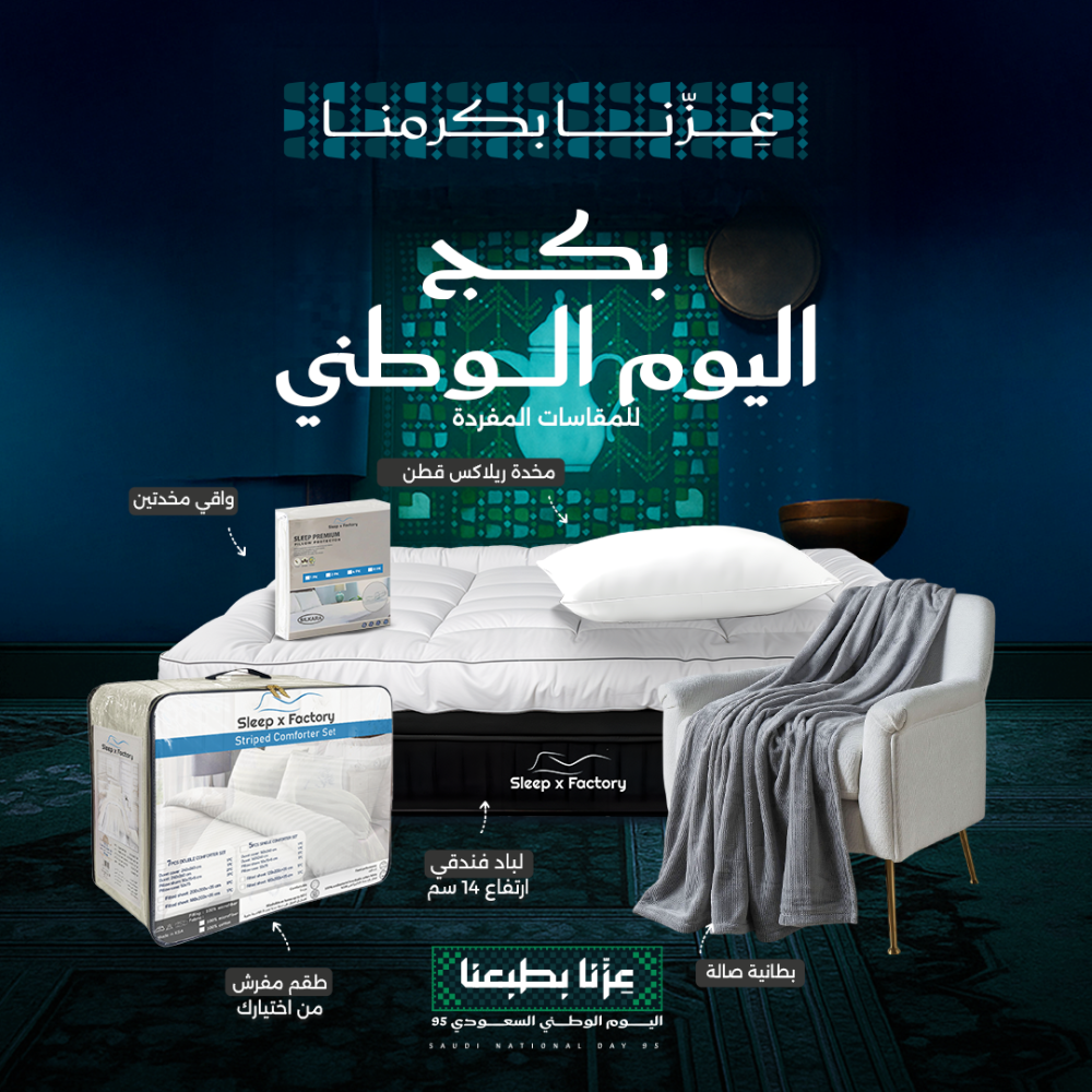 |- اللباد الفندقي والمفرش الفندقي ومخدة ريلاكس وطقم الواقي: المملكة العربية السعودية.